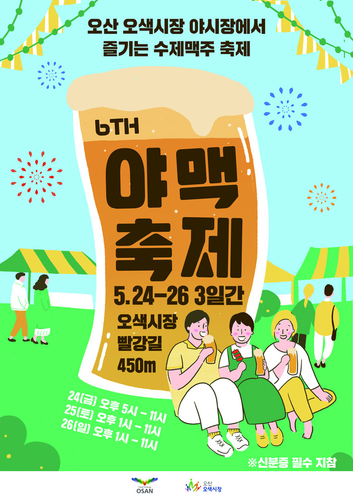 [로컬세계 고용주 기자]경기 오산 오색시장 빨강길 일대에서 향긋한 수제맥주와 야시장으로 물들일 ‘제6회 야맥축제’가 오는 24~26일 개최된다.