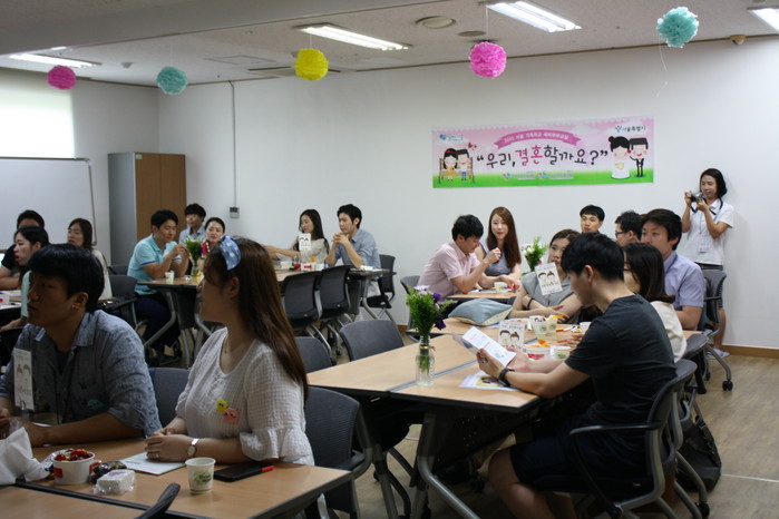 ▲‘우리 결혼할까요’에 참여한 예비부부들이 교육을 받고 있다. |