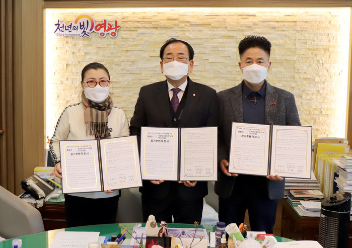 [로컬세계 오승용 기자]전남 영광군은 지난 11일 농업회사법인(주)금호와 ㈜195F&B에서 군청을 찾아 어려운 이웃들을 위해 써달라며 쿠키와 빵을 군에 전달하고, 앞으로 분기마다 300여 만원 가량의 물품을 기탁하기로 약정식을 체결했다고 12일 밝혔다.