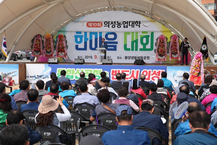 한편 지난 3월을 시작으로 오는 10월 23일까지 운영되는 의성농업대학은 CEO반자두반의 2개 과정에 79명이 재학 중이다. 이날 참석자들은 개회식에 앞서 통합신공항 유치를 위한 깜짝 퍼포먼스를 전개하는 등 신공항 유치에 대한 의지를 다지기도 했다.