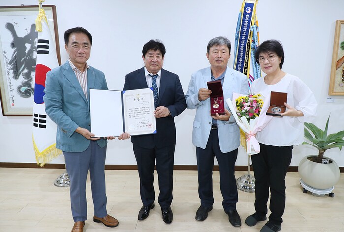 ▲ 평택시는 지난 7일 평택시 지제동에 거주하는 무공훈장 故김창열의 유가족 자녀에게 국방부장관을 대신해 훈장을 전수했다.(평택시 제공) |