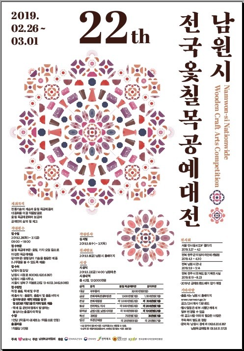 ‘남원시 전국 옻칠 목공예대전’은 남원목기의 명성을 잇고, 전통기술의 계승과 옻칠 목공예품의 대중화를 이끌 작품발굴을 위해 1998년부터 개최한 전국대전이다.
