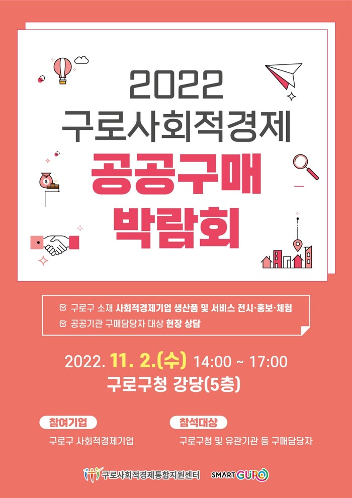 [로컬세계=임종환 기자]서울 구로구가 내달 2일 구청 강당에서 사회적경제 공공구매 박람회를 연다.