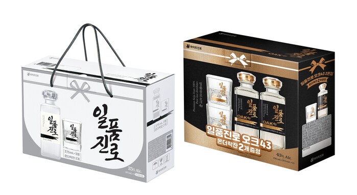 하이트진로 100년 증류주 노하우의 정수인 일품진로 선물세트는 375ml 3병과 온더락잔 2개로 구성했다. 일품진로는 향과 풍미가 가장 뛰어난 중간 원액만 사용, 영하의 온도에서 잡미, 불순물을 걸러내는 냉동여과공법 후에 최적의 숙성 기간을 거친다. 깔끔하고 부드러운 목넘김과 은은한 맛을 구현한 것이 특징이다.