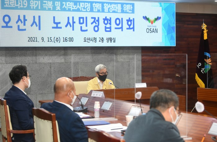 [로컬세계 김병민 기자]경기 오산시가 지난 15일 시청 상황실에서 노사민정협의회를 개최하고 코로나19 극복을 위한 노사민정 공동선언문을 채택했다고 16일 밝혔다.