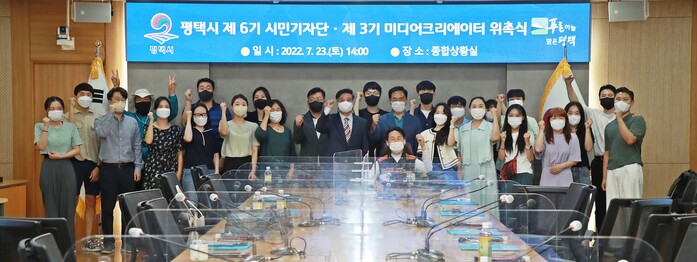 [로컬세계=김병민 기자]경기 평택시(시장 정장선)는 지난 23일 시청 종합상황실에서 새롭게 구성된 제6기 블로그 시민기자단·제3기 미디어크리에이터 50여 명이 참석한 가운데 위촉식을 개최했다.