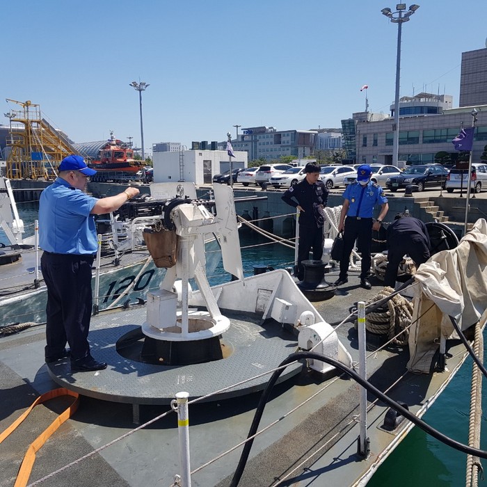 | ▲남해해경청 훈련단 직원들이 소속 경비함정을 방문해 함정 내 병기상태를 점검하고 있다.(남해지방해양경찰청 제공) |