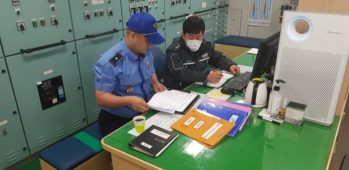 | ▲해경청 훈련단 직원들이 소속 경비함정을 방문해 각종 서류들을 점검하고 있다. |