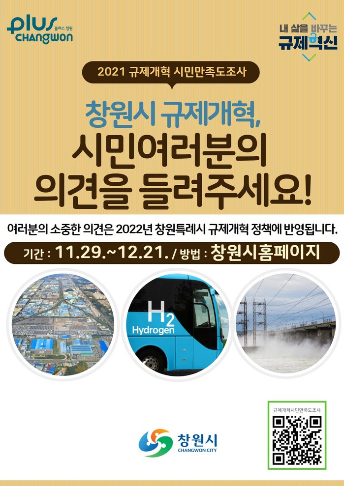 시는 이번 조사를 통해 올 한해 창원시 규제개혁 정책과 성과에 대한 시민 체감도를 확인하고 시민의 다양한 의견을 수렴하여 2022년 특례시에 걸맞는 규제개혁 정책을 수립할 계획이다.