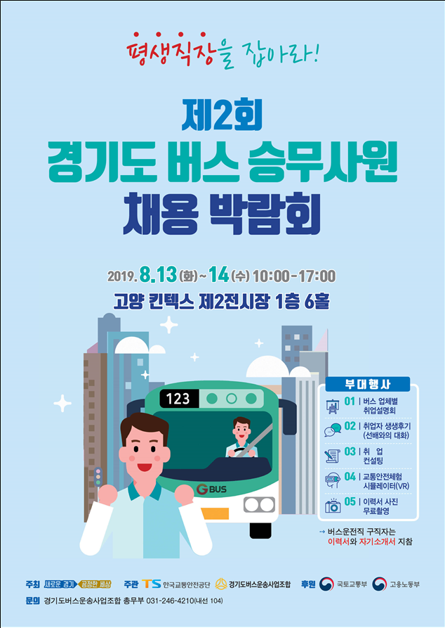 이번 채용박람회에 대한 보다 자세한 내용은 경기도 버스운송사업조합(031-246-4210~3, 내선104)으로 문의할 수 있다.