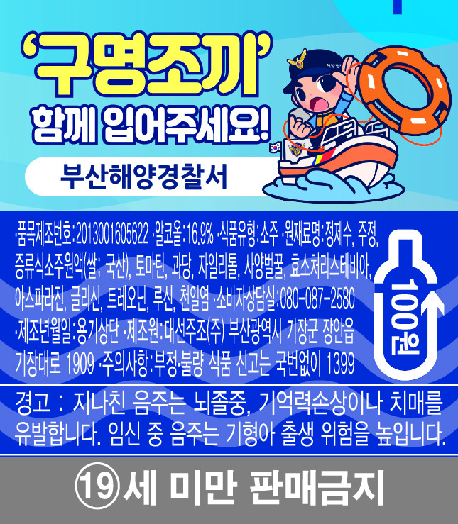 [로컬세계 맹화찬 기자]부산해양경찰서는 부산 대표 향토기업인 대선주조㈜와 함께 여름철 물놀이 성수기에 대비하여 구명조끼 입기 캠페인을 벌인다고 5일 밝혔다.