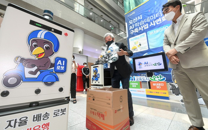 | ▲AI공모사업 자율배송운행로봇 시연회 개최. 오산시 제공 |