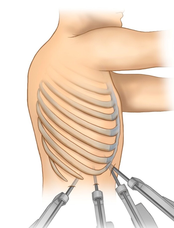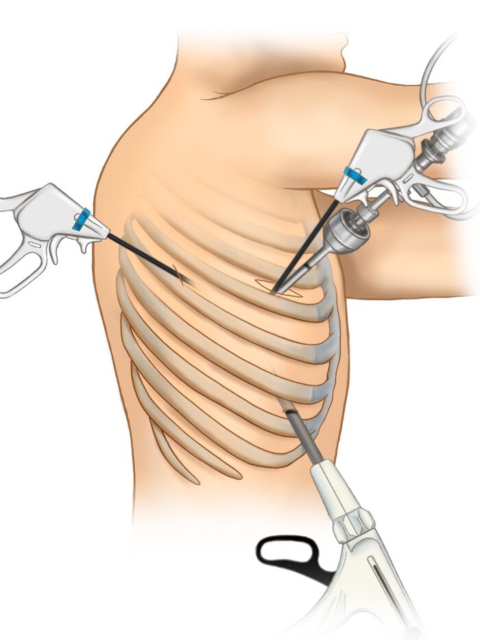 그러나 이러한 수술법에도 단점이 있다. 비록 2~3개의 작은 구멍에 불과하지만 갈비뼈 사이를 절개해야 하는데, 이곳에는 척수로부터 갈라져 나온 늑간 신경(갈비뼈 사이 신경)이 위치하고 있어 수술 후 신경 손상 및 합병증이 발생할 위험이 매우 높다는 점이다.