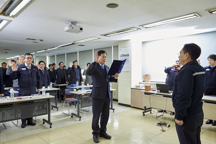 ▲ 쌍용차 참석자들이 2017년 서비스목표 달성 결의문을 낭독하고 있다. |