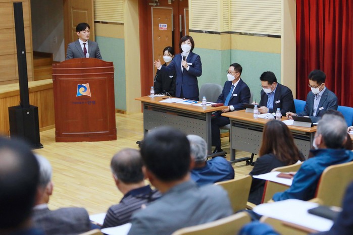 | ▲김보라 시장이 지난 2일 공도읍행정복지센터 대회의실에서 ‘2차 읍면동 정책공감토크’를 진행하고 있다. 안성시 제공. |