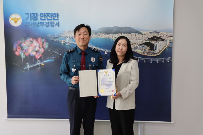 [로컬세계 부산=맹화찬 기자] 부산 남부경찰서는 전화금융사기(보이스피싱) 피해를 예방한 농협은행 박00(45세,여)씨에게 2일 표창장을 수여했다.