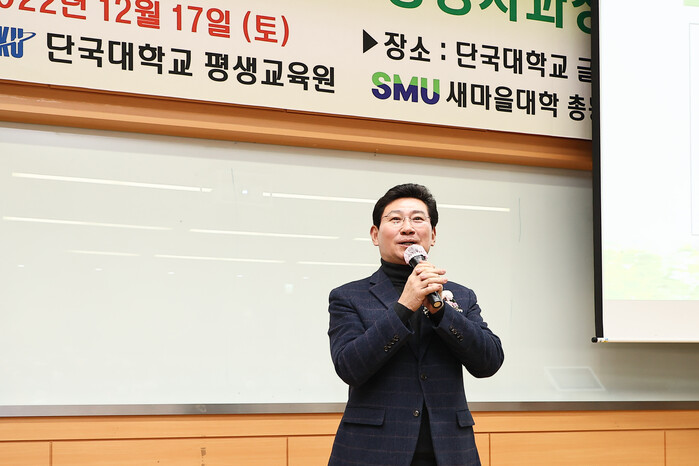 이상일 용인특례시장이 17일 단국대학교 평생교육원에서 열린 '새마을대학(SMU) 최고경영자과정 제11기 졸업식'에 참석해 졸업생들을 격려했다.