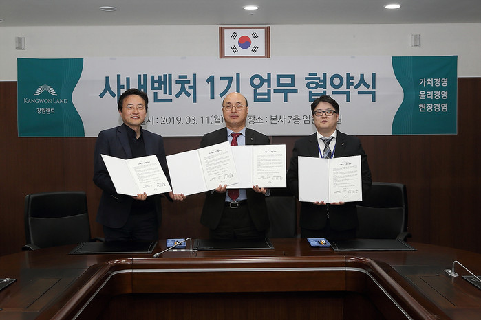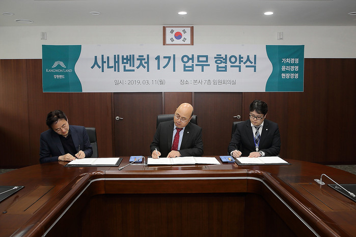 ▲사내벤처 1기 업무협약식 모습.(강원랜드 제공) |