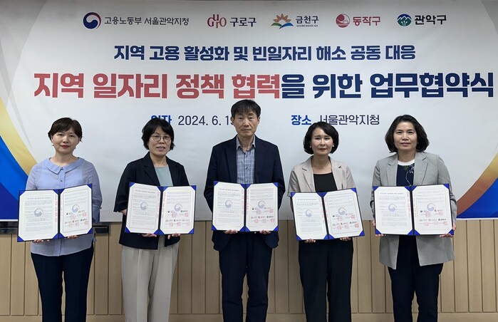 구는 지난 6월 19일 고용노동부 서울관악지청에서 ▲서울관악지청 ▲구로구 ▲금천구 ▲동작구와 지역 일자리 협력체계 구축을 위한 업무협약을 체결하고 지역 고용 활성화와 빈일자리 해소를 위한 공동 대응에 나섰다.