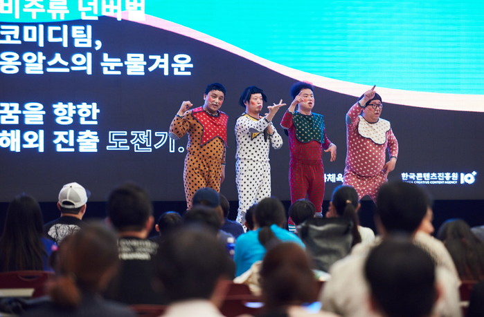 ▲지난 4일~6일 벡스코에서 열린 ‘2019 넥스트콘텐츠페어’에서 코미디팀 ‘옹알스’가 공연을 선보이고 있다. |