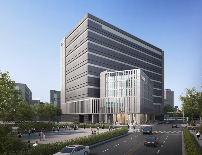 ▲LG유플러스는 2023년 3분기 준공을 목표로 신규 인터넷데이터센터(IDC)인 평촌2센터 착공에 돌입했다. 사진은 신규 IDC 주경 투시도. |