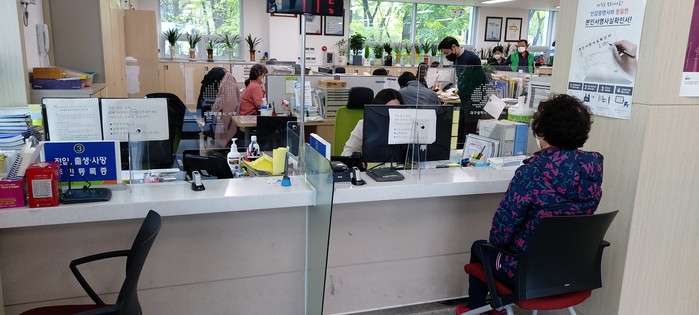 [로컬세계 박세환 기자]대구 서구 상중이동 새마을협의회 부녀회에서는 상중이동행정복지센터 직원과 민원인의 코로나19 예방을 위해 가림막 6개 (65만원 상당)를 민원창구에 설치했다.