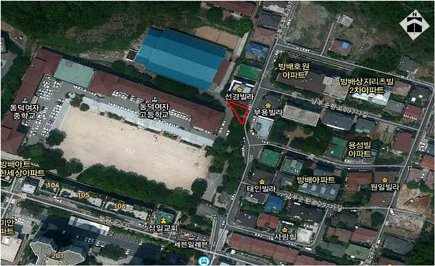 ▲서초구 방배동 593-40번지 항공사진.(서울시 제공) |