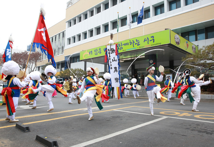 둘째 날인 29일은 오전 10시부터 날뫼북춤보존회, 천왕메기보존회와 함께 연합해 올 한해 구민의 안녕과 건강을 기원하고 만사형통의 염원을 담아 원고개시장(비산농악 및 날뫼북춤 발원지), 신평리 일대 등 서구 지역 곳곳을 순회하며 행사를 펼친다.