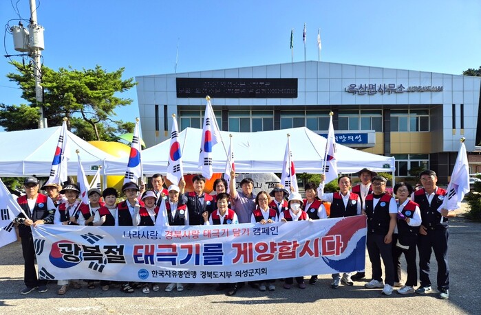 [로컬세계=박상진 기자]경북 의성군은 한국자유총연맹 의성군지회가 제79주년 광복절을 맞아 지난 14일 옥산면사무소 앞에서 ‘나라 사랑 태극기 나눔 행사’를 진행했다고 16일 밝혔다.