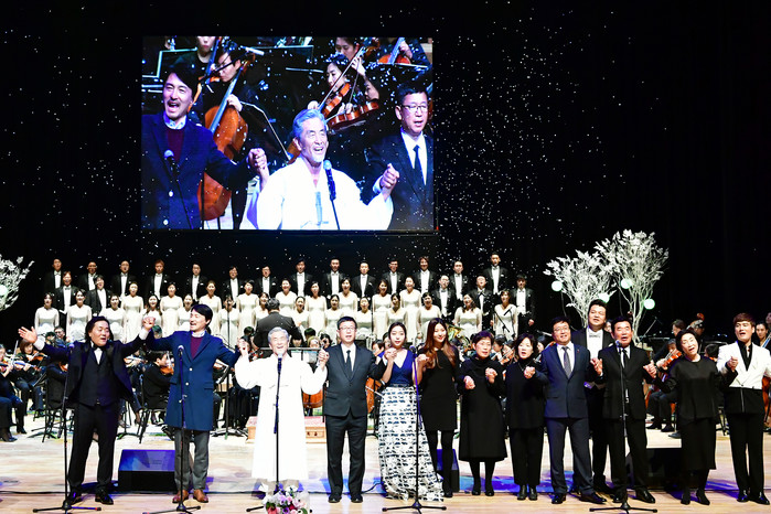 수원시립교향악단·수원시립합창단은 ‘그대 내게 행복을 주는 사람’, ‘그리운 금강산’ 등 아름다운 노래와 음악을 들려줬고, 3부에는 소리꾼 장사익씨가 출연했다.