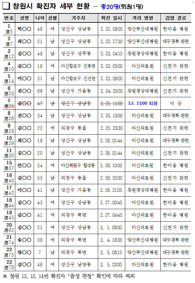 안병오 창원시 코로나19 대응 종합상황실장은 “현재 코로나19의 치료약이나 백신이 개발된 상황은 아니므로 마스크 착용 등 개인 위생수칙을 철저히 준수해 줄 것을 다시 한번 당부드린다”고 말했다.