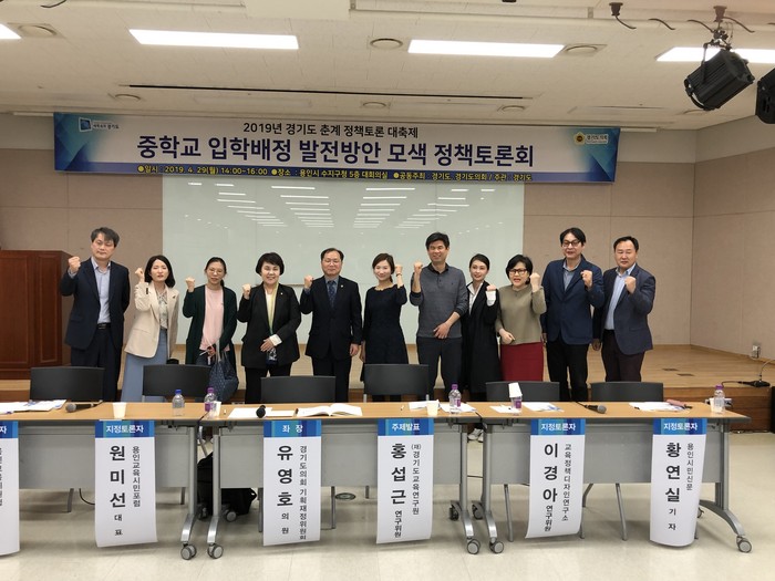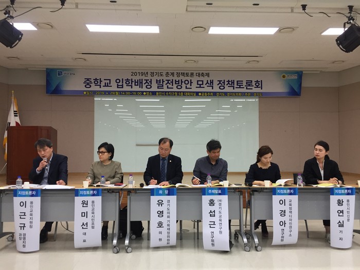 주제발표자인 경기도교육연구원 홍섭근 연구위원은 ‘용인시 입학배정에 관한 일반적인 현황’에 이어 ‘용인시 중학교 입학 배정 현황과 문제점’에 대해 관내 다양한 지역의 사례를 들어 분석하면서 ‘교육청 인사시스템의 보완’, ‘정책용역의 시행 및 법·제도 개선을 통한 제도적 개선’과 ‘학부모 및 이해관계가 있는 건설사업자에 대한 설명회’, ‘교통인프라 확충 및 비선호학교 지원 강화’ 방안을 제안했다.