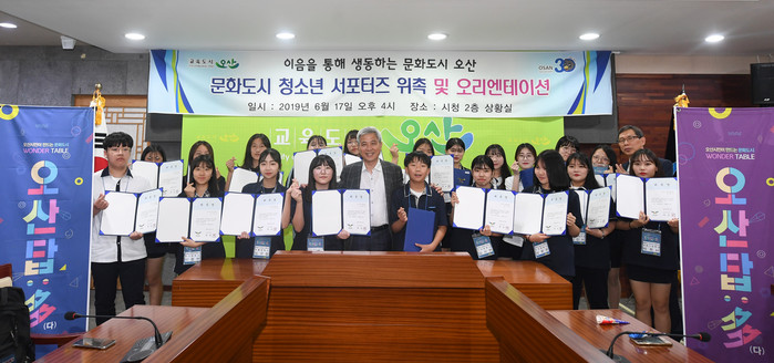 이번 청소년 서포터즈 위촉과 향후 활동에 대해 관리하게 되는 오산문화원 김종욱 사무국장은 “문화도시는 어느 계층, 어느 연령층을 위한 사업이 아니라 모든 시민을 위하고 모든 시민이 함께 만들어 가는 프로젝트”라며 “청소년 서포터즈 여러분들이 학교 현장에서 원하는 문화예술에 대한 문제점과 요구에 대한 답을 같이 찾고 가장 오산다운 답을 만들었으면 좋겠다”고 말했다.