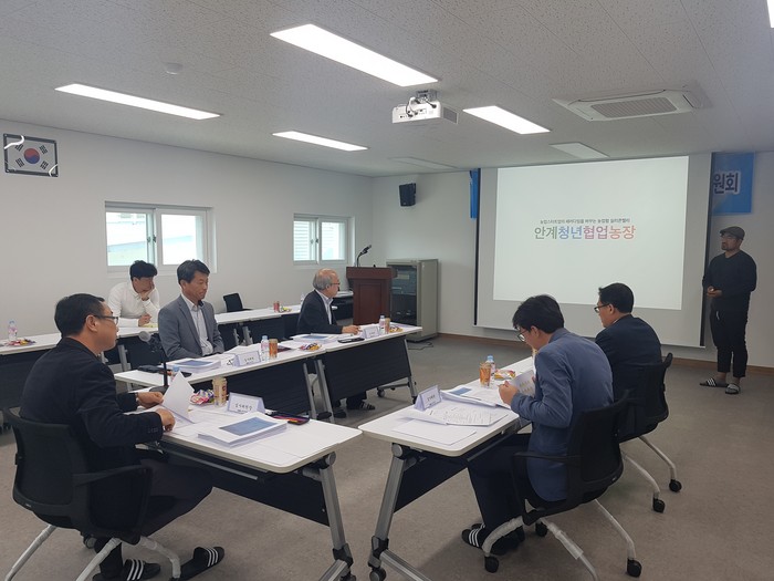 | ▲지난 16일에 이웃사촌지원센터 회의실에서 진행된 청년 시범마을조성 일자리사업 심사 모습.(의성군 제공) |