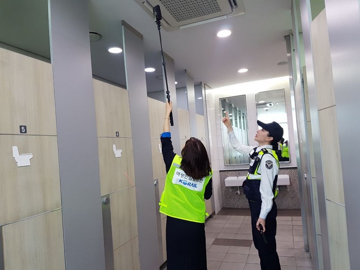 우선 각 역에서는 몰래카메라 탐지장비를 활용해 매일 1회 이상 화장실 등 주요시설물에 대해 점검하고, 월 1회 이상은 철도특별사법경찰대, 지역경찰서와 합동으로 점검활동을 펼친다.