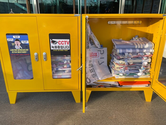 공유 장바구니 보관함은 매일시장 입구와 북부시장 공영주차장 부근 시장 입구에 설치돼 있어 시민들이 폐현수막을 활용해 만든 장바구니 100여장과 기부한 종이가방 50여장이 보관돼 있다.