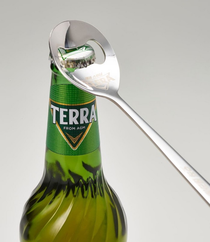 하이트진로는 테라를 즐기는 새로운 방법을 모색하던 중,누구나 한번쯤 도전해봤을 ‘숟가락으로 맥주병 따기’에 착안해 스푸너를 개발하게 됐다.