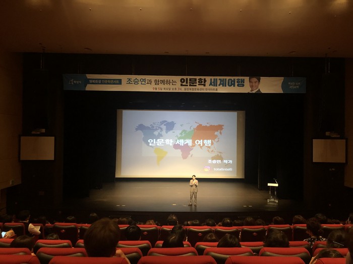 이날 교육에는 500여 명의 화성시민이 참석했으며 ‘조승연과 함께하는 인문학 세계여행 ’을 주제로 조승연 작가가 강연에 나섰다.