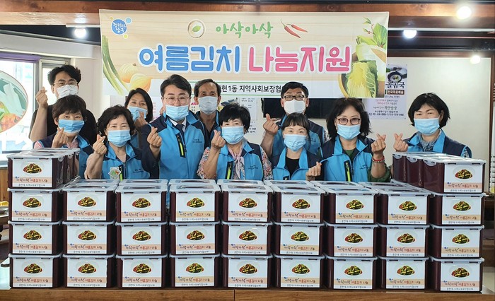 [로컬세계 맹화찬 기자]지난 16일 부산 남구 문현1동행정복지센터(동장 홍종오)는 동 지역사회보장협의체 주관으로 '아삭아삭 여름김치'나눔 행사를 진행했다.