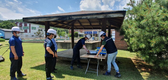 지난 11일부터 15일까지 의성군환경사업소((주)에코비트워터)와 함께 공공하수처리설 5개소, 소규모하수처리시설 7개소와 맨홀·배수펌프장 90개소를 대상으로 폭염기 대비 합동점검을 마치고, 폭염으로 인한 작업자 온열질환 예방을 위해 쉼터와 음용수 비치 여부, 밀폐공간 작업 안전사고 예방을 위한 관련 기자재 구비 여부와 교육훈련 사항 등을 확인했다.