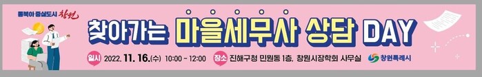 ▲ 창원특례시, ‘찾아가는 마을세무사 상담Day’ 운영 배너. 창원특례시 제공 |