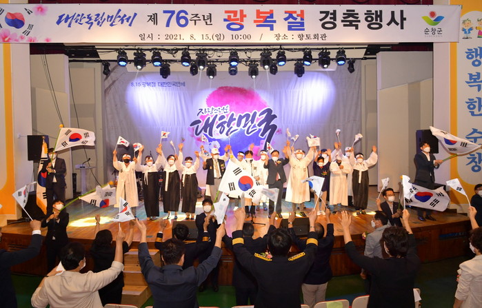 순창군은 현재 사회적 거리두기 2단계로 코로나19 방역수칙을 준수하며 엄숙한 가운데 차분하게 행사를 진행했다. 행사장내 참석한 인원들은 마스크를 착용하고 서로 간 띄어앉기로 코로나19 감염병 예방에 노력했다. 이날 행사는 국민의례, 기념사, 경축사, 기념공연, 광복절 노래 제창 등의 순으로 진행됐다.