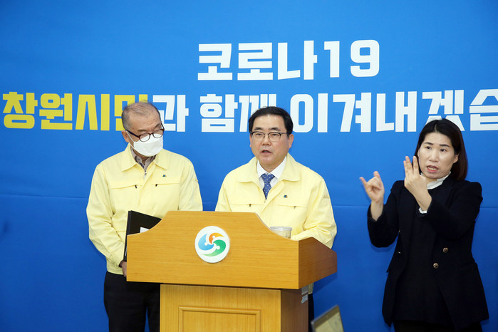 | ▲허성무 시장이 2일 오전 11 창원시청 프레스센터에 브리핑을 하고 있다.(창원시 제공) |