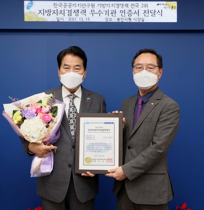 용인시는 한국공공자치연구원이 발표한 2021 한국지방자치경쟁력지수(KLCI)분석 결과 전국 75개 지방자치 시 가운데 2년 연속 종합 2위를 차지했다고 15일 밝혔다.