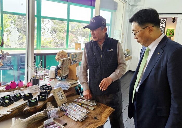 ▲ 탐나라공화국 현장 방문사진. 한국농수산식품유통공사 김춘진 사장(우측), 탐나라공화국 강우현 대표(좌측) |