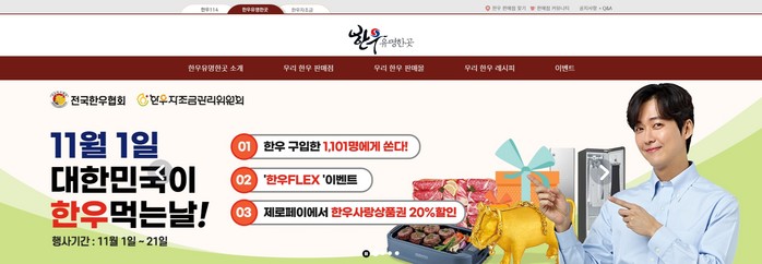 특히, ‘한우유명한곳’에서는 오는 21일까지 ‘11월 1일 대한민국이 한우먹는날’을 맞이해 ‘우리한우판매점 QR코드 방문 인증 이벤트’, ‘도전! 한우 인싸력 테스트’ 등 다양한 온,오프라인 이벤트를 진행하여 푸짐한 경품도 준비되어 있으니 꼭 한 번 방문해 보도록 하자. 이 외에도 한우 인증 식당과 한우를 저렴하게 구입할 수 있는 판매몰도 한 번에 모아 소개하고 있으니, ‘한우유명한곳’과 함께 ‘일두백미’ 우리 한우를 더욱 알차게 즐겨보는 것을 어떨까.