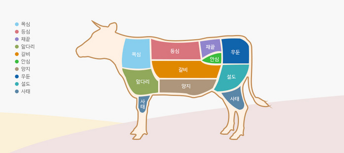 ▲한우 대분할 부위 (출처: 한우자조금관리위원회) |