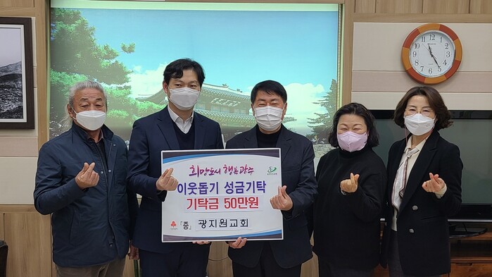 이에 대해 최영수 면장은 “뜻깊은 나눔을 실천해 주신 광지원교회 목사님과 성도분들에게 감사드린다”며 “기탁해 주신 성금은 도움이 필요한 이웃에게 소중히 사용하겠다”고 답했다.