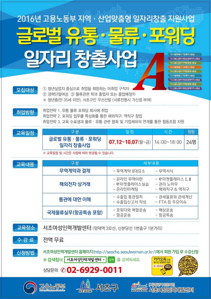 ▲‘2016년 글로벌 유통·물류·포워딩 일자리창출사업’포스터. |