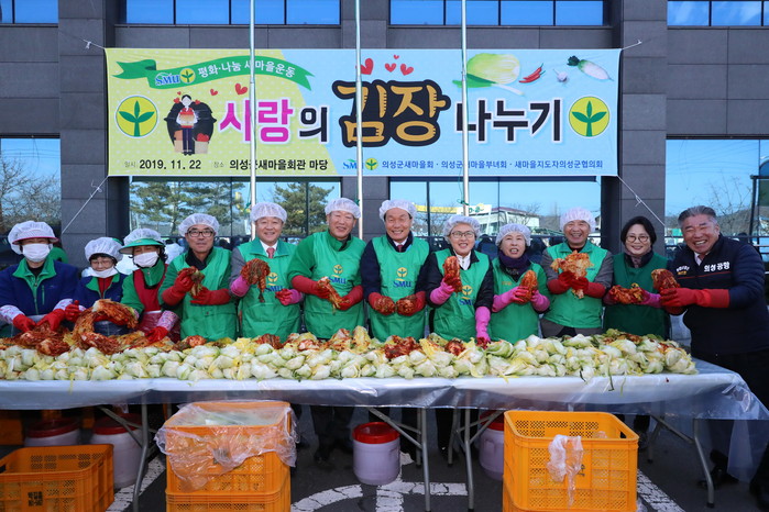 의성군 새마을회는 함께 사는 공동체 운동을 몸소 실천하는 단체로, 매년 김장김치 담가주기 행사를 실시해 담근 김치를 어려운 이웃들에 나누어 주고 있다.